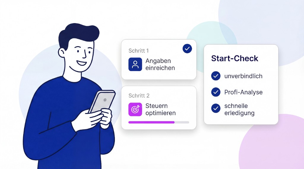 Starte mit einem kurzen Check. Wir übernehmen Ausfüllung und Prüfung – du gibst uns nur die Unterlagen.
